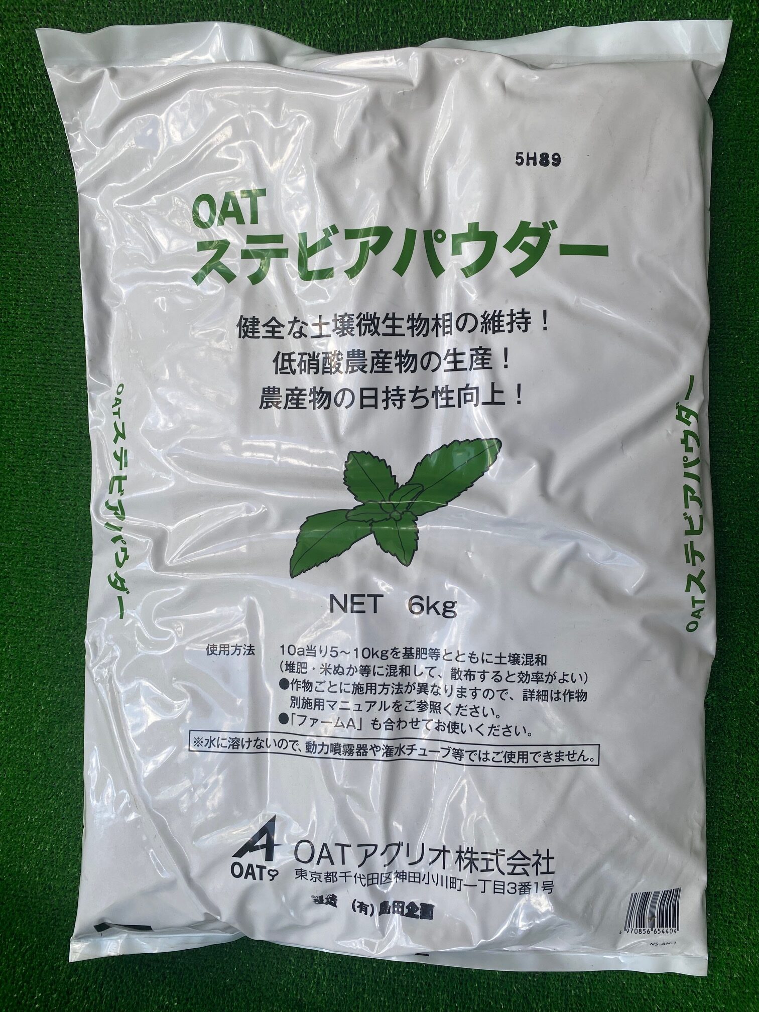 有機栽培適合資材。ステビア資材の集大成。健全な土壌微生物を維持し、豊かな土壌を作ります。基肥・追肥・土作り、低硝酸作物の生産(10aに対して6kg使用)土壌微生物の環境を整えます。自然乾燥させたステビア草の茎と葉を粉砕機で微粉末(粒径20~30um)としたものです。